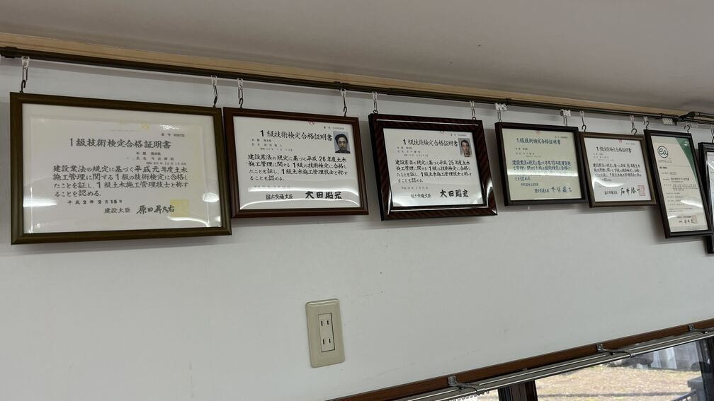 | 個人の資格 | 一級土木施工管理士:5名 監理技術者:5名 一級建築施工技士:1名 二級管工事施工管理技士:1名 車両係(解体・整地・運搬・積込):10名 その他多数 |