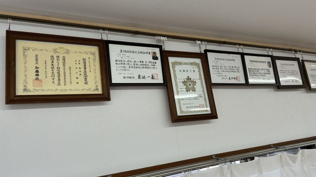 必要とされる工法や技術を取り入れながら事業を展開し続け、現在は建設業許可29業種のうち22業種の熊本県の許可を得ています。